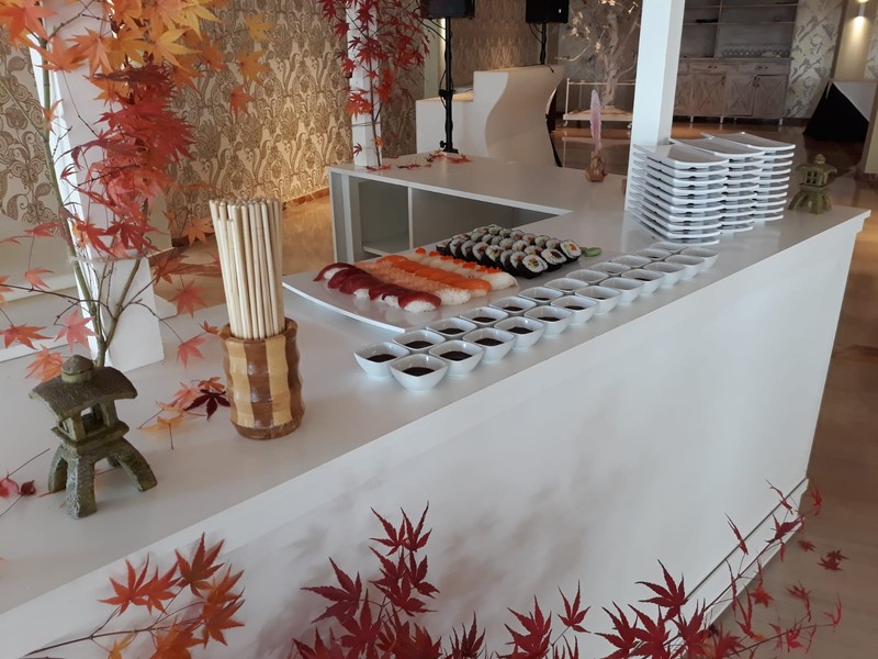 Ofrecemos un servicio especializado en sushi, que trabajamos a nivel profesional en nuestro restaurante y cocineros orientales que ofrecen una mejor imagen para este tipo de servicios.