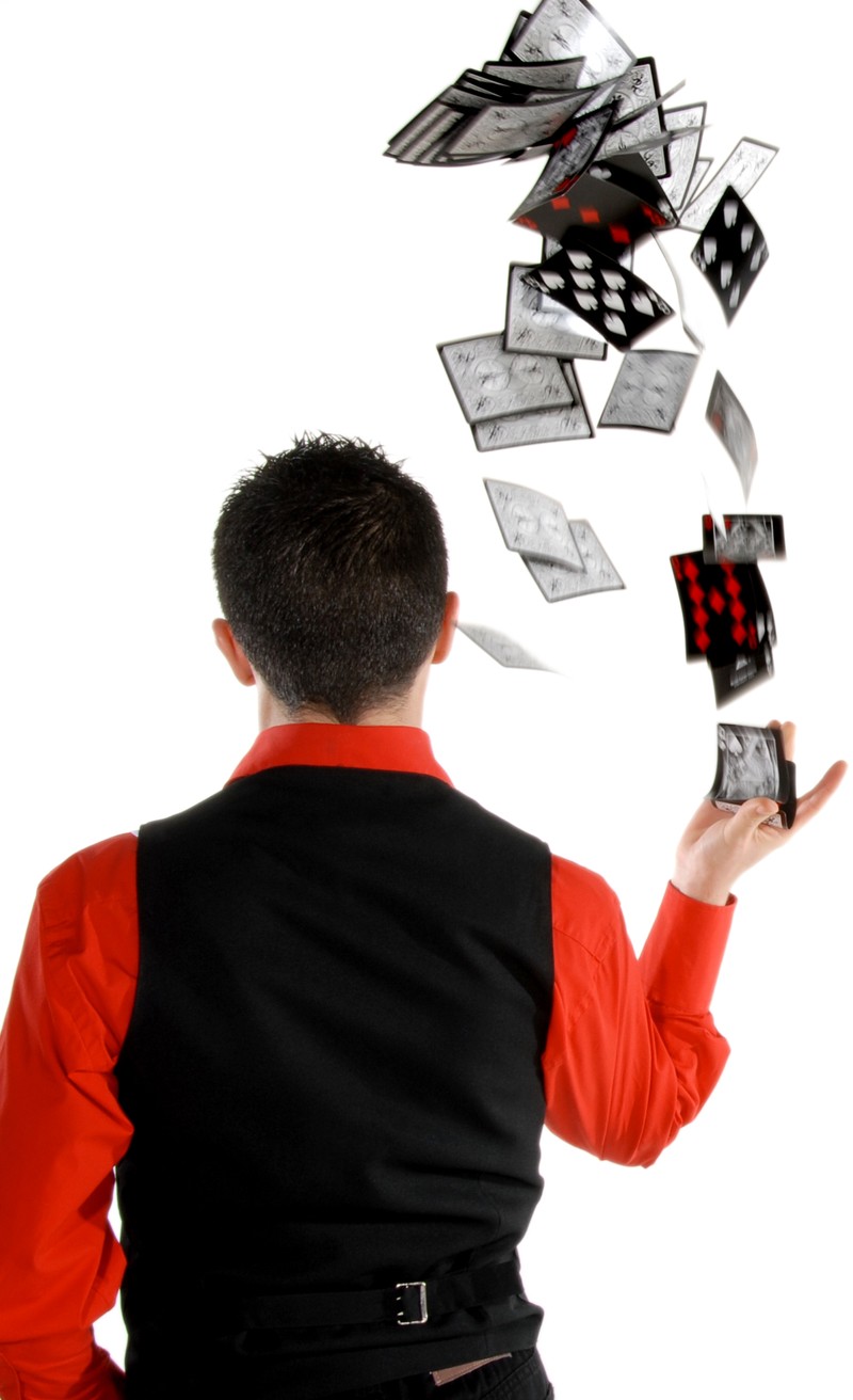 MAGIA DE CERCA: magia a escasos centímetros de los espectadores: cartas que cambian de valor, monedas que desaparecen, gomas elásticas que se enlazan, esponjas que cambian de color y/o forma...