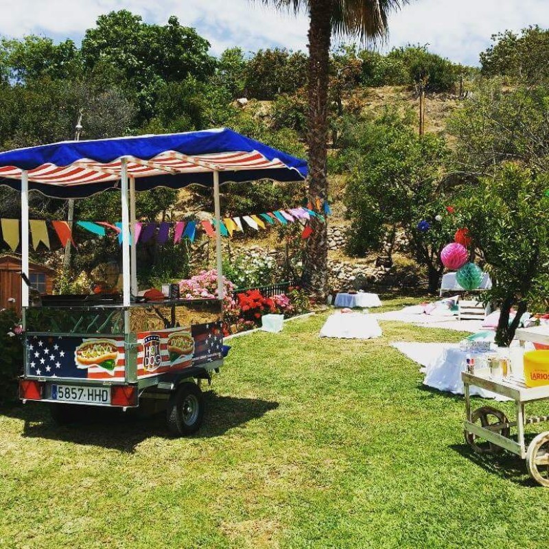 Os gusta la comida americana? Entonces esta opción es la ideal para la recena de tu boda. Puedes incluir una mesa buffet de pequeñas hamburguesas y hotdog o un carrito al más puro estilo americano y colocarlo en un punto estratégico de la fiesta para que todos los invitados se acerquen y lo disfruten