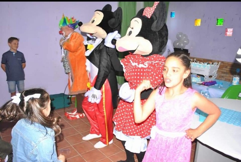 Donde tenemos castillo hinchable,fotomatón, los personajes de disney Mickey y Minnie,payasos