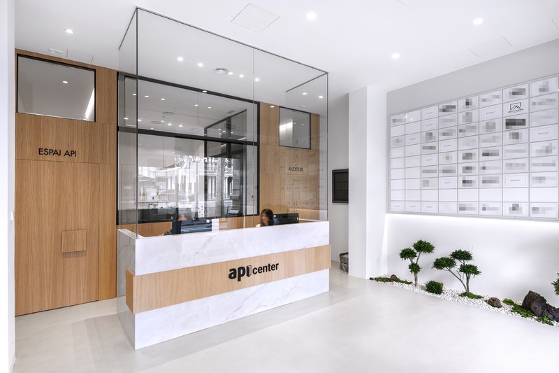 El API Center está dotado con un auditorio para 94 personas, un espacio de trabajo común (con dos mesas para 12 puestos de trabajo en "hot deskings" alquilables por horas), una sala de reuniones (con una capacidad de hasta 6 personas), dos aulas de formación (convertibles en una sola para 50 personas), una sala de grabación y una sala Proptech. Todo ello equipado para ofrecer una multiplicidad de posibilidades a precios muy accesibles y en una de las zonas mejor comunicadas de Barcelona.