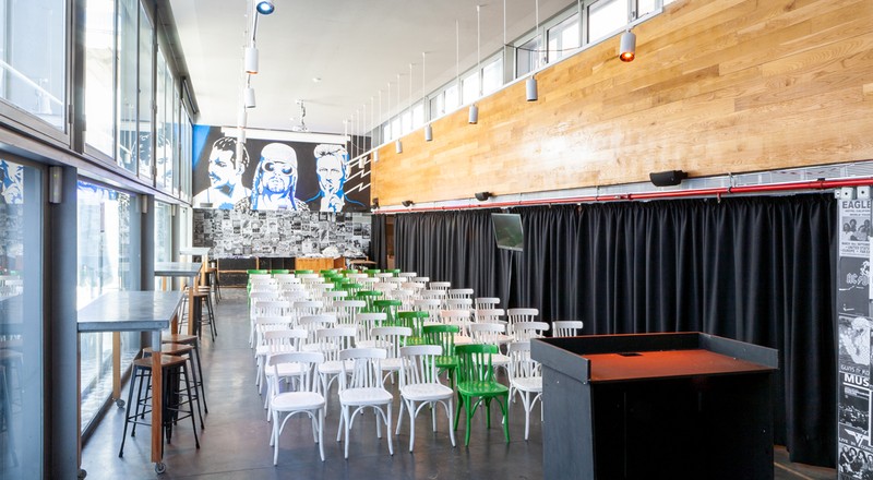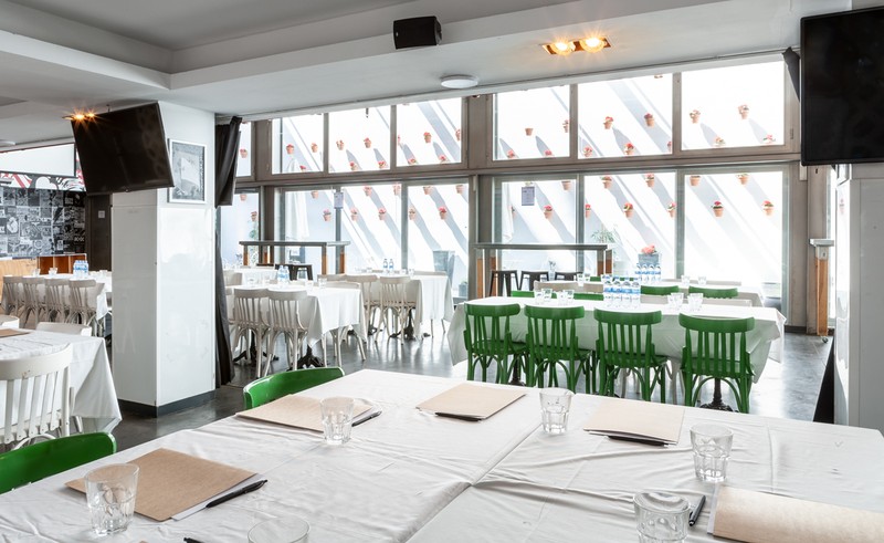 Tenemos una gran área en la parte posterior del bar capaz de albergar cómodamente a 120 personas sentadas, este espacio se conecta a dos terrazas que reciben luz natural durante todo el día.
