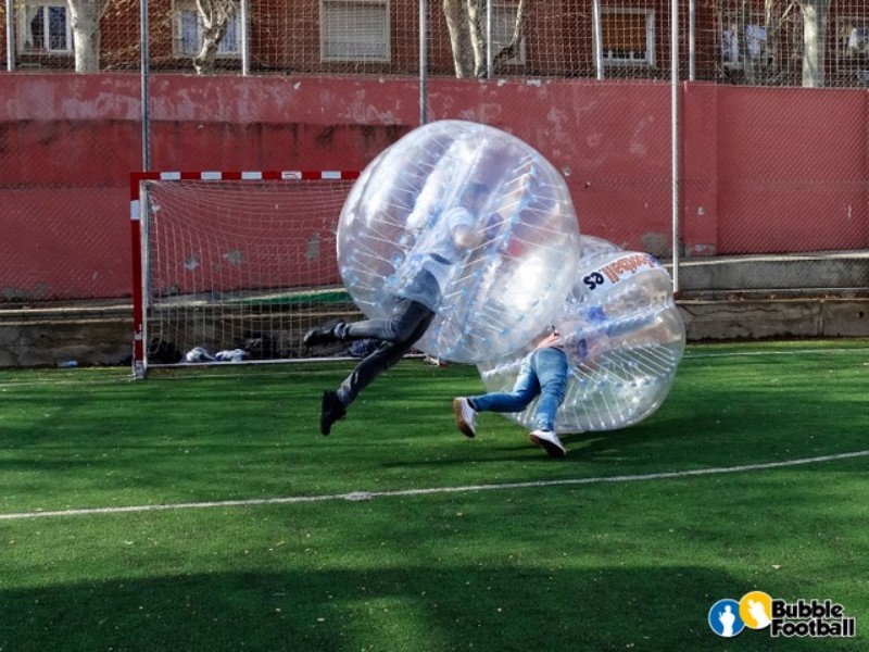 ¡Preparad las zapatillas! En Bubble Football Barcelona os organizamos el mejor partido de bubble football que jugaréis en la ciudad condal. Para ello podréis elegir entre 3 centros deportivos. ¿No os viene bien ninguno? No os preocupéis, si sabéis de alguna instalación o terreno donde podáis jugar, nosotros nos acercamos. ¿Ya tenéis los equipos formados? Entonces escoged los petos que os repartiremos. Debéis ser a partir de 8 jugadores. Luego os explicaremos cómo se coloca el arnés, al que posteriormente irá sujeto esa gran burbuja característica de este deporte. Lo más importante que debéis tener en cuenta es la deportividad. Y ya está, porque no hay normas. Simplemente debéis divertiros corriendo o rodando, lo que más emocionante os parezca. ¡Pero meted gol! Los equipos debéis demostrar que sois los mejores. En definitiva, 1 hora de diversión, acompañados por un monitor que siempre os irá dando indicaciones para que en el partido os los paséis genial sin problemas.