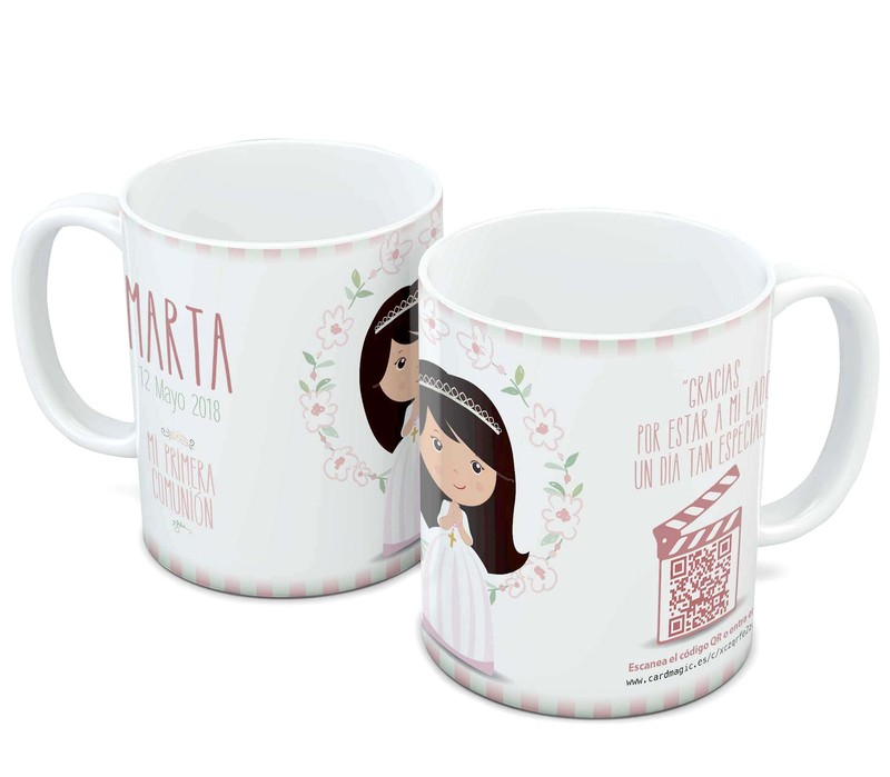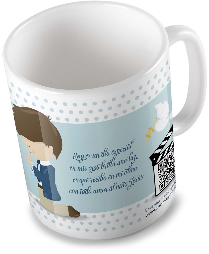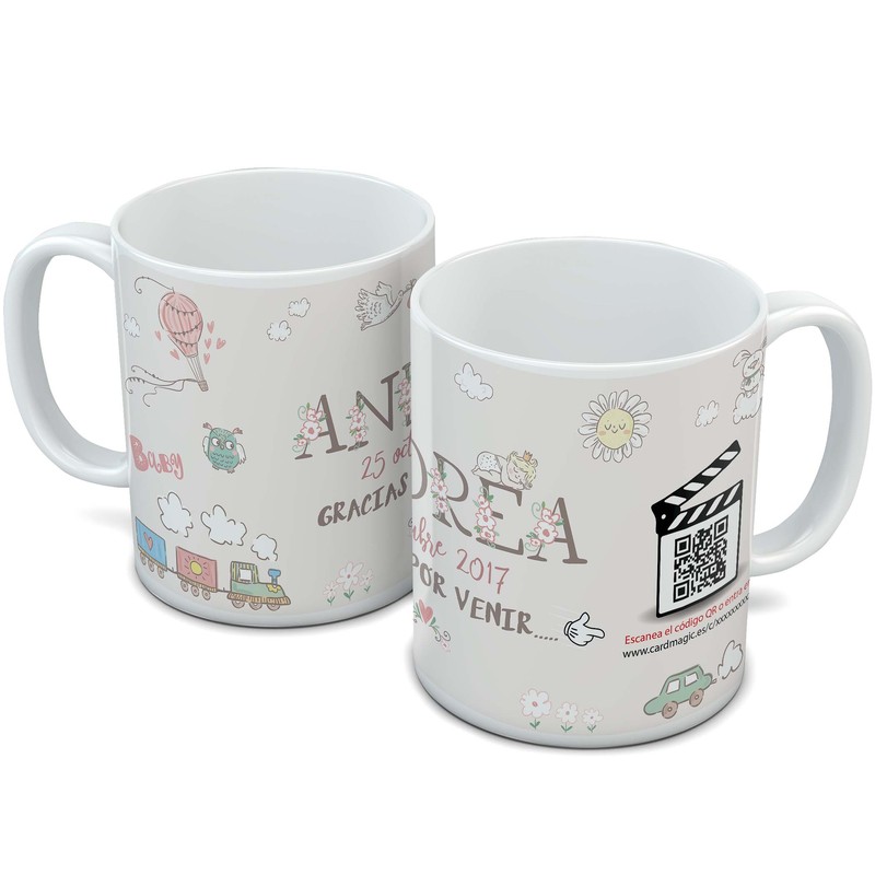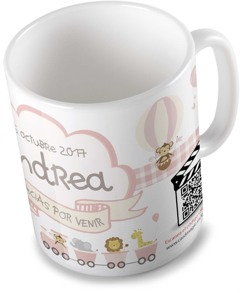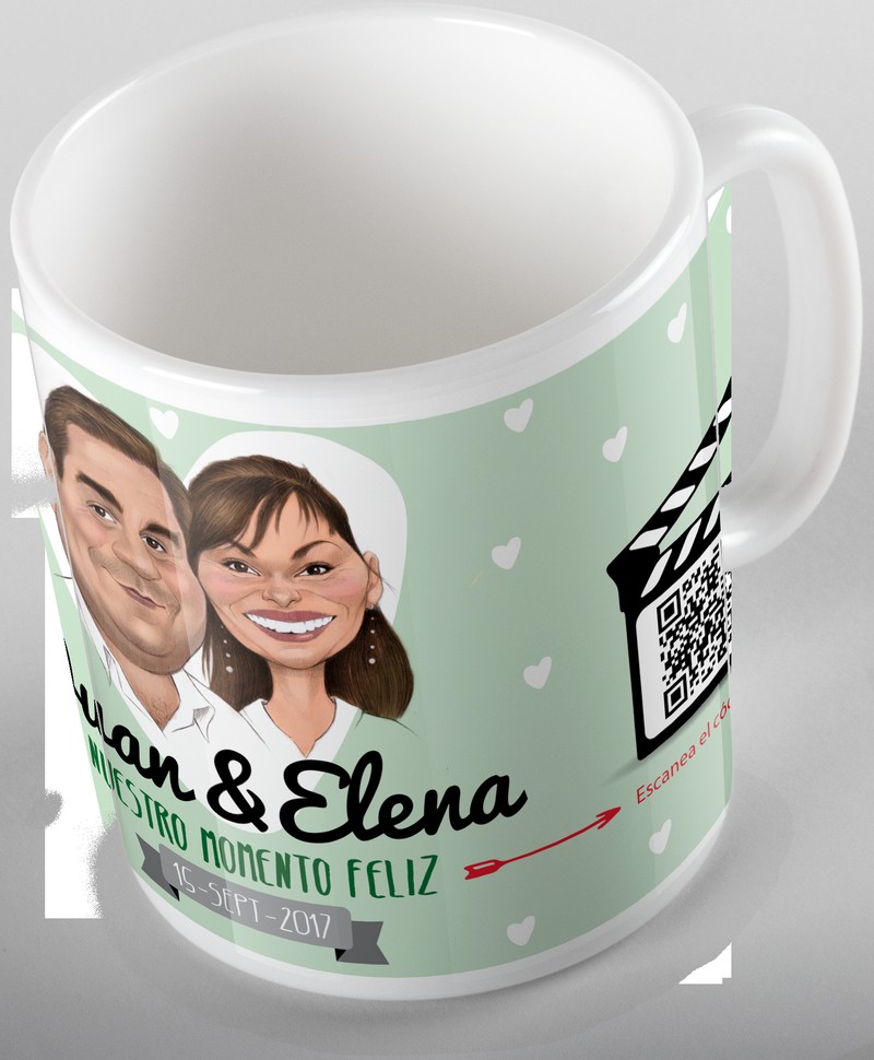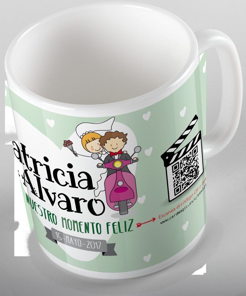Video tazas con QR. Puedes subir un vídeo o fotos a la propia taza, haciendo del regalo un objeto único.