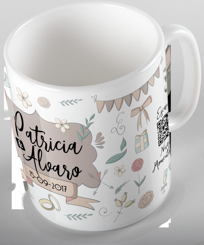 No hay nada igual. Una taza en la que se puede subir contenido multimedia y que los invitados se lleven un recuerdo único y original. Puedes subir cualquier momento de la celebración en vídeo de 20" o 10 fotos de manera muy sencilla. Olvida los regalos tradicionales que al final solo se almacenan y no vuelven a verde más. Una taza siempre se utiliza y en cualquier momento, escaneando el QR que aparece en ella, volverán a recordar la situación.