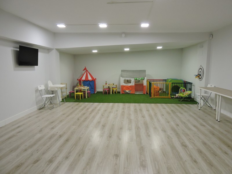 Hemos creado un espacio versátil que se adapta a todo tipo de eventos y celebraciones. La sala está totalmente equipada con mobiliario para niños y adultos, equipos electrónicos y electrodomésticos básicos. Dispones de 150 metros cuadrados, distribuidos en dos plantas, dos baños y una pequeña cocina con barra americana.