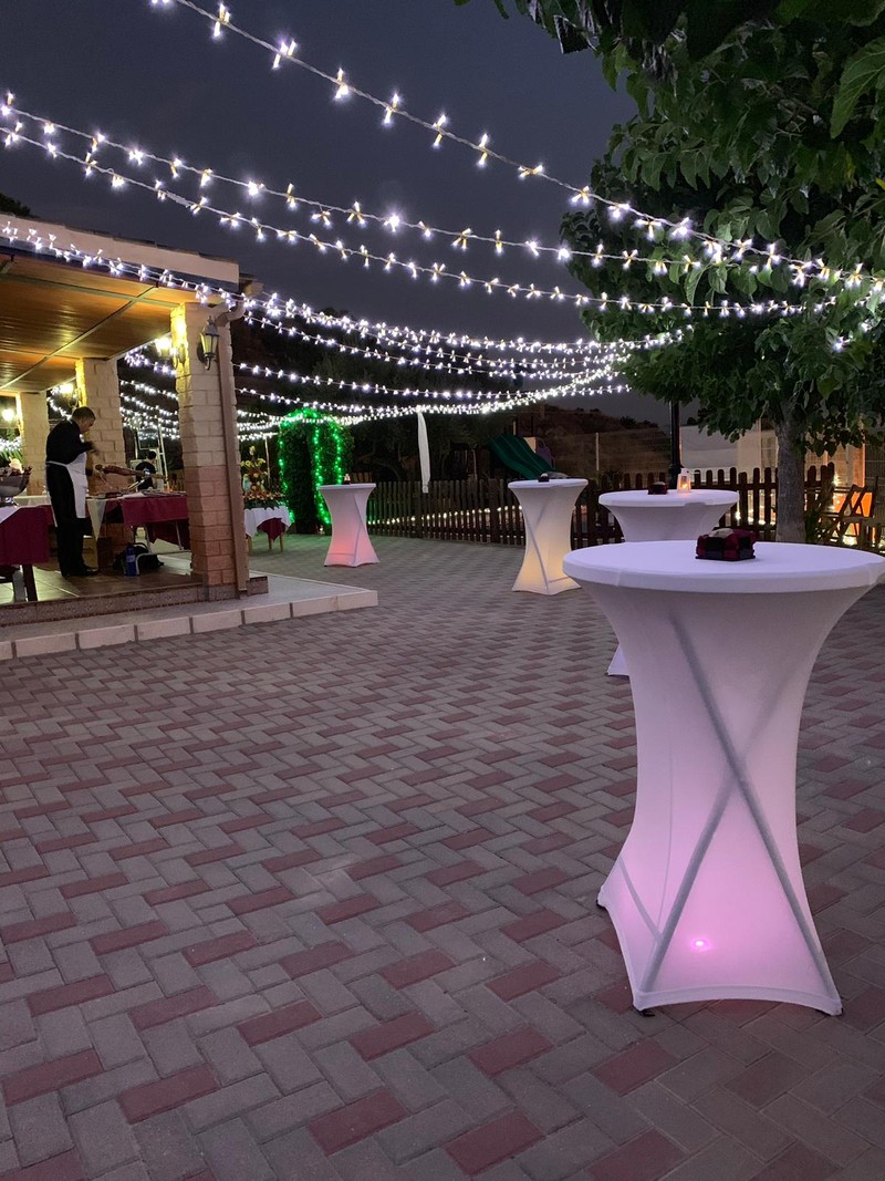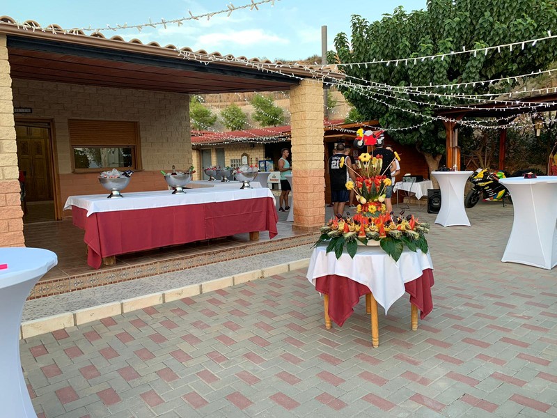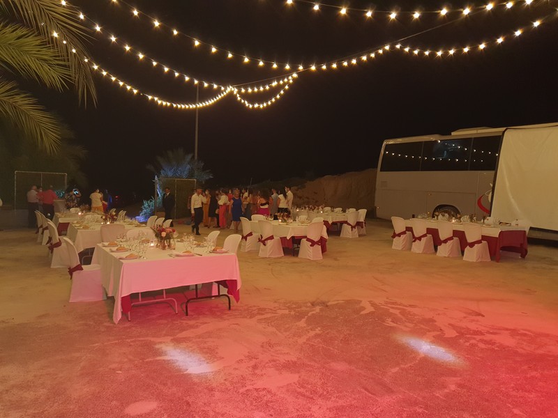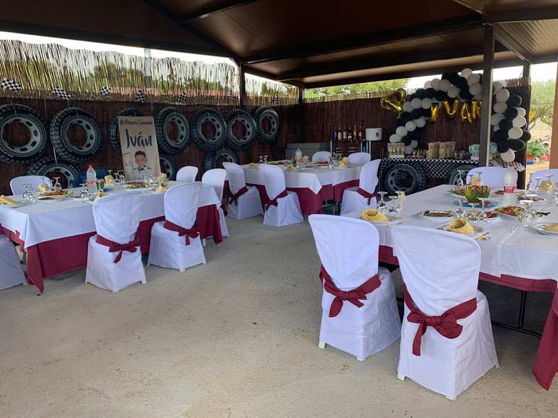 2 furgones de apoyo y almacén de bebidas. Empresas contratadas de decoración, jardinería, mesas y sillas, carpas, autobuses, coches antiguos, limusinas.