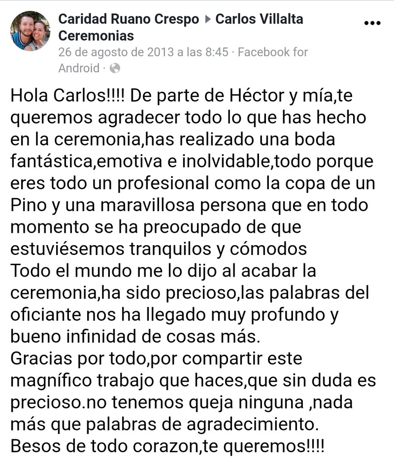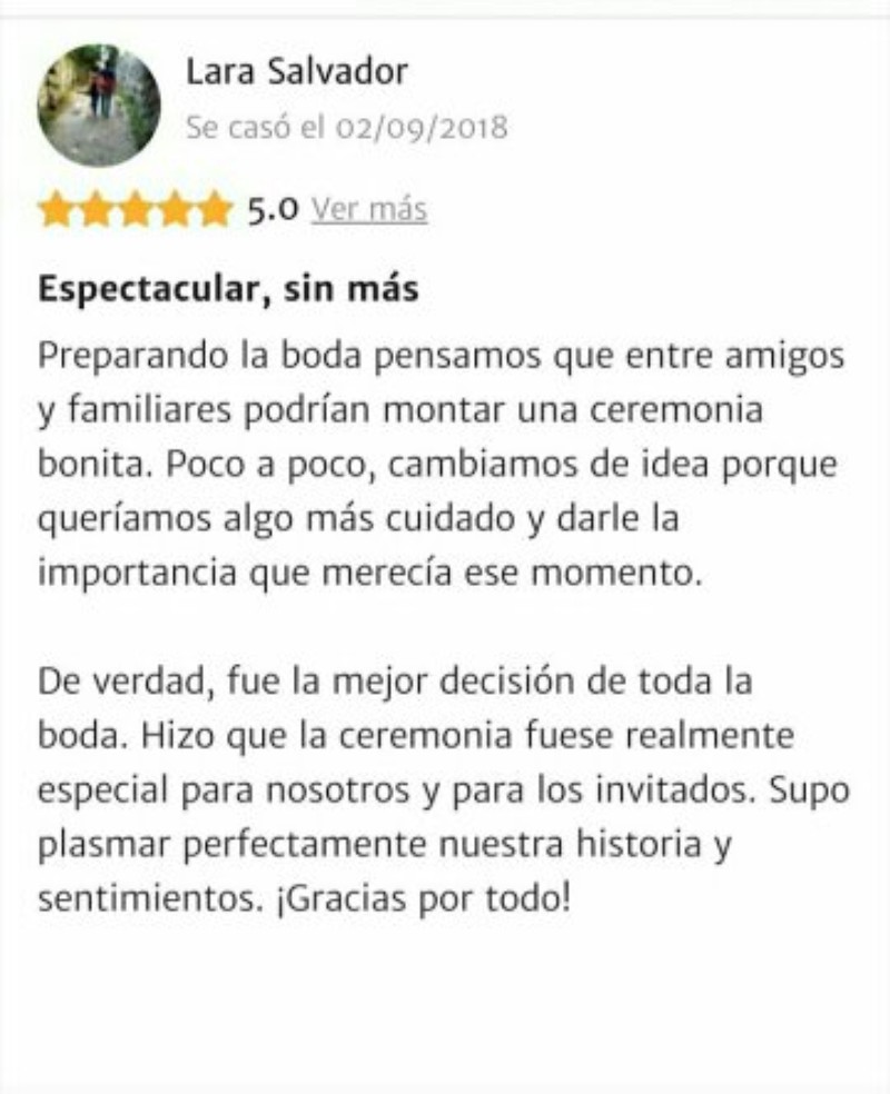 Ceremonias Con Alma nació con la idea de crear celebraciones de boda personalizadas. La experiencia nos permite diseñar una ceremonia que quede en el recuerdo de todos. Los ingredientes son un poco de romanticismo, un poco de humor y un toque de tradición, siempre respetando los gustos personales de la pareja. La capacidad de organizar la ceremonia se une al encanto y calidez del maestro de ceremonias y su equipo, ya que vivimos cada boda como algo personal