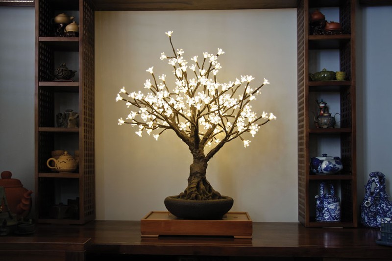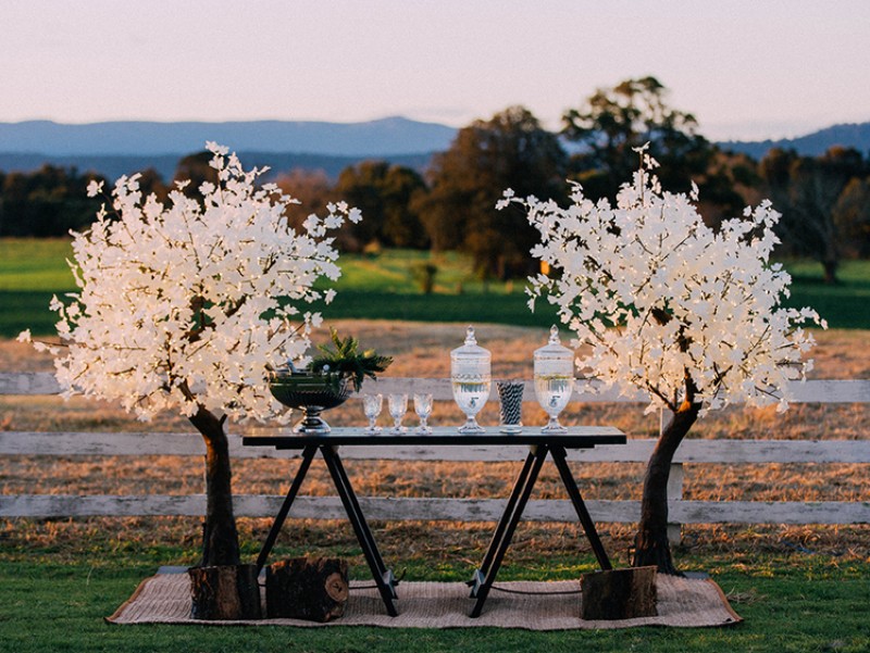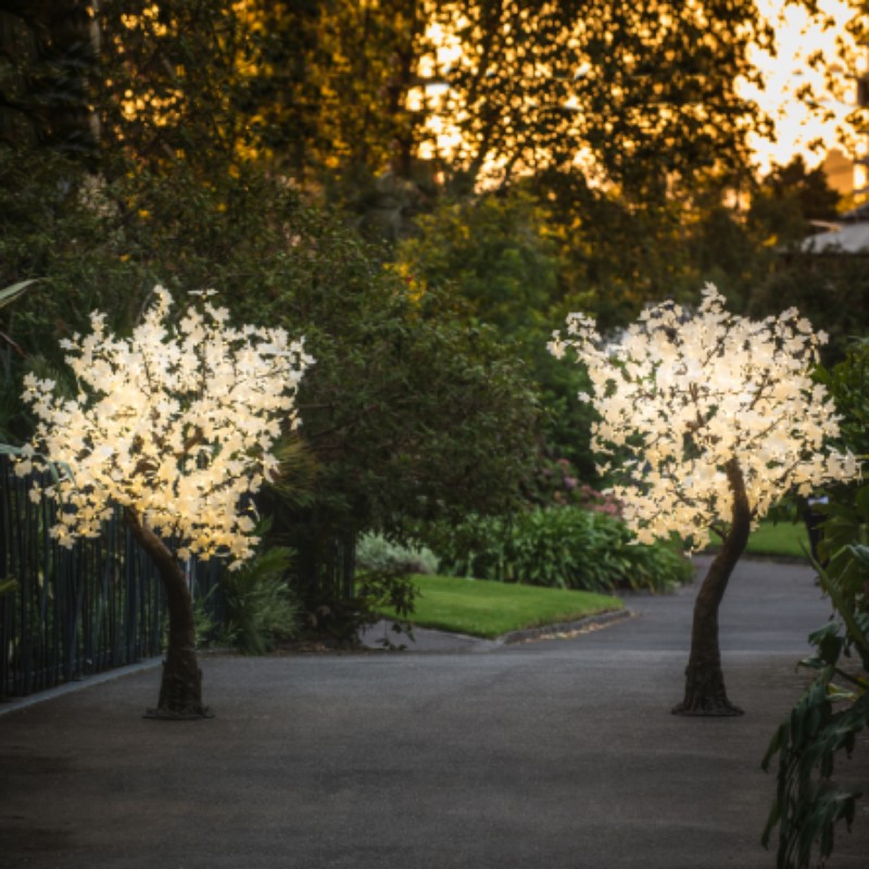 ¿Por qué conformarse con un photocall o un fotomatón para las fotos del día cuando se puede decorar con árboles de luces LED?