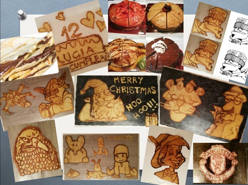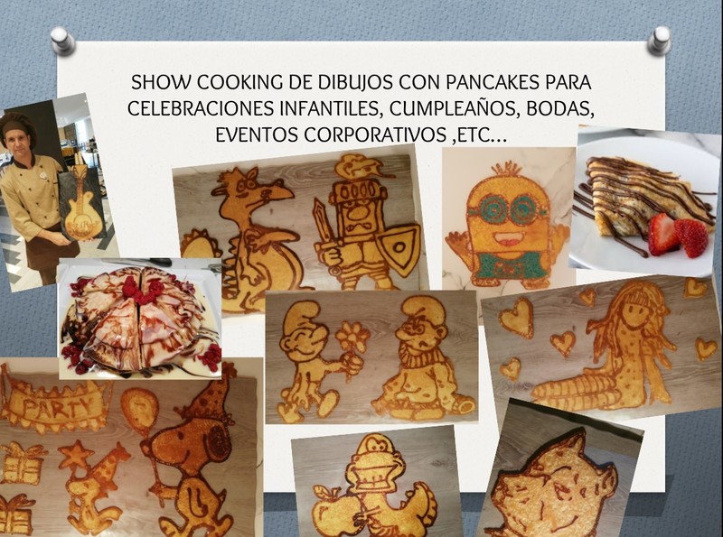 Mi trabajo consiste en crear cualquier dibujo que el cliente me pida hecho en un pancake y en el momento y también me especializo en crepes.