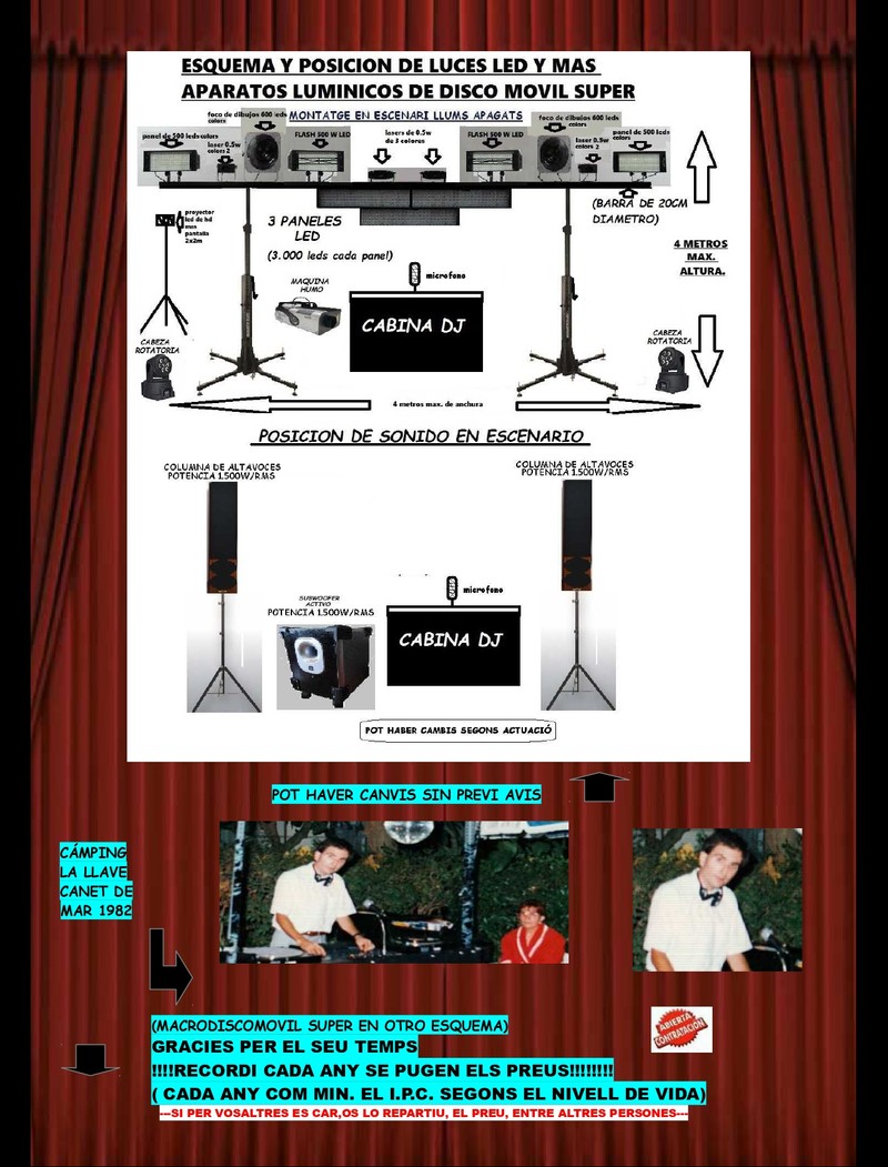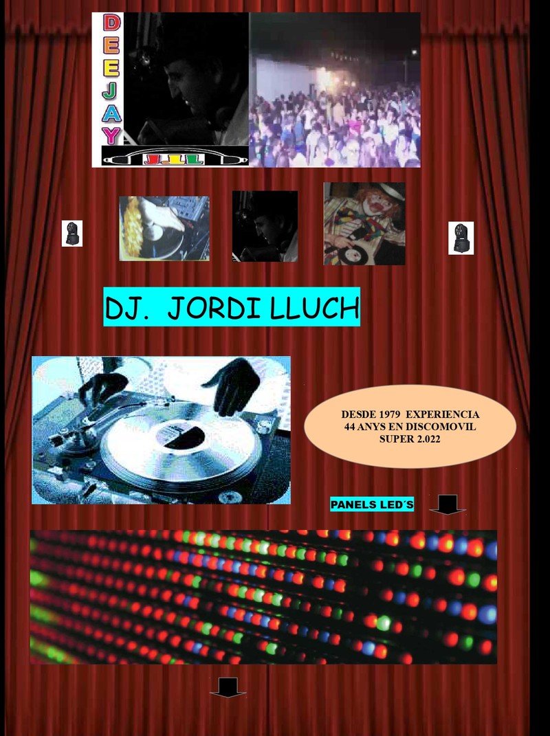 DJ. J.LLUCH MAS DE 45 AÑOS DE EXPERIENCIA DEMOSTRABLE LLEVANDO UNA DISCOTECA MOVIL SUPER© PRECIOS ADAPTABLES A CADA EVENTO Y LUGARES PRIVADOS SIEMPRE CON IVA Y CONTRATO.
