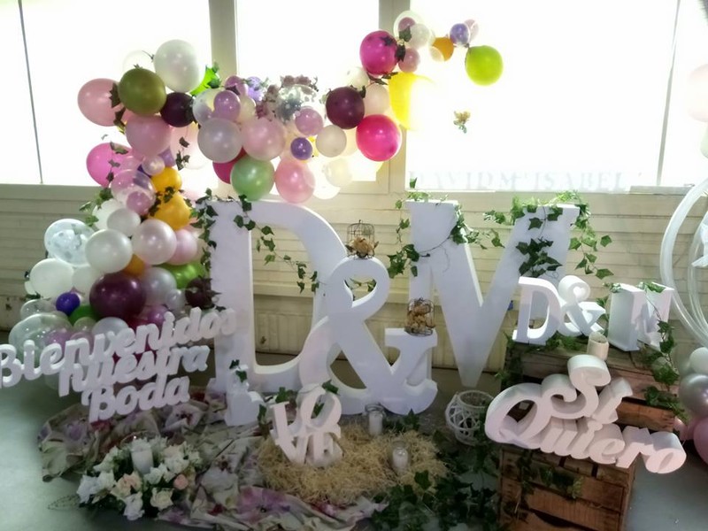 Candybar, suelta de globos, animación infantil, karaoke, iniciales gigantes, arco nupcial, centros de mesa, adornos de sillas, tartas artesanas, tematización de fiestas, escaparates, etc...