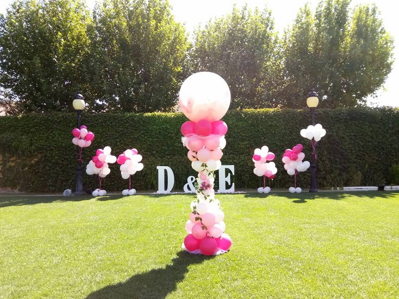 Especialidad decoración con globos, flores y telas.