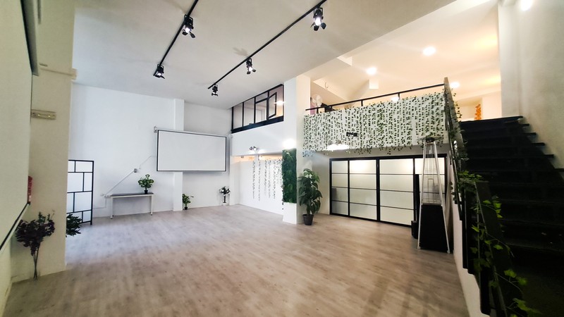 Cuenta con luz natural, techos de 5 metros y una planta con zona de office con nevera, congelador, microondas y cafetera.