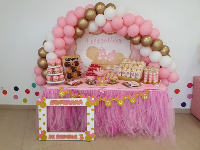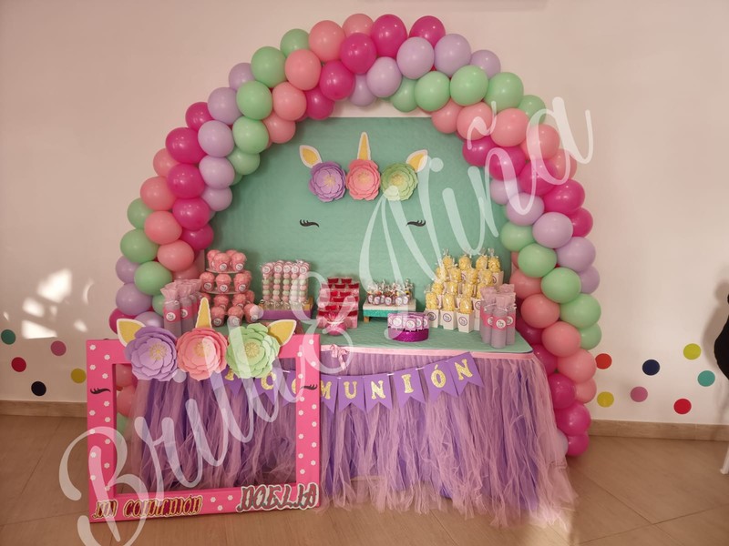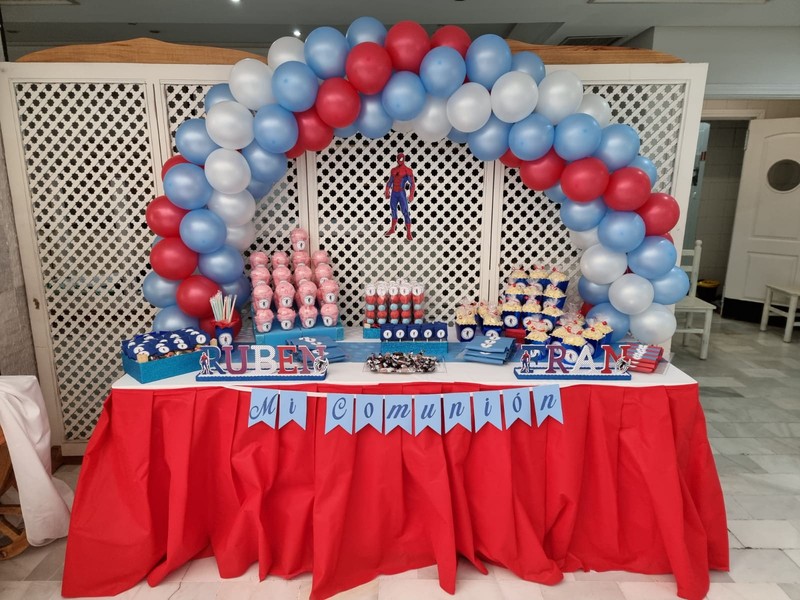 Nos dedicamos a todo tipo de decoraciones con globos, mesas dulces, marcos photocall, centros de mesa, detalles para los invitados.