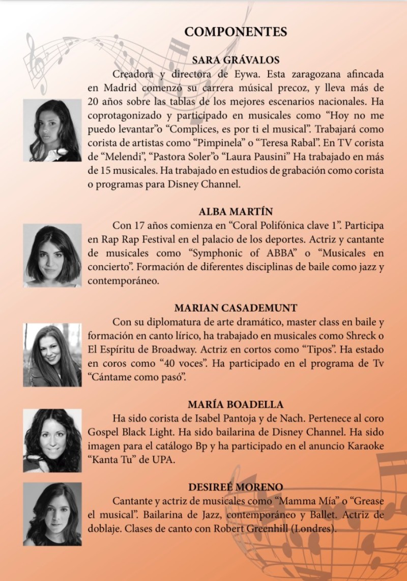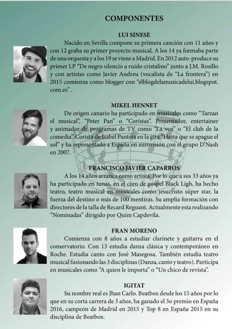 El grupo está compuesto puesto por diferentes tipos de artistas todos provenientes de musicales como “Hoy no me puedo levantar” entre otros. Hacemos Medleys de diferentes estilos para todos los gustos. Tenemos página de Facebook e instagram.