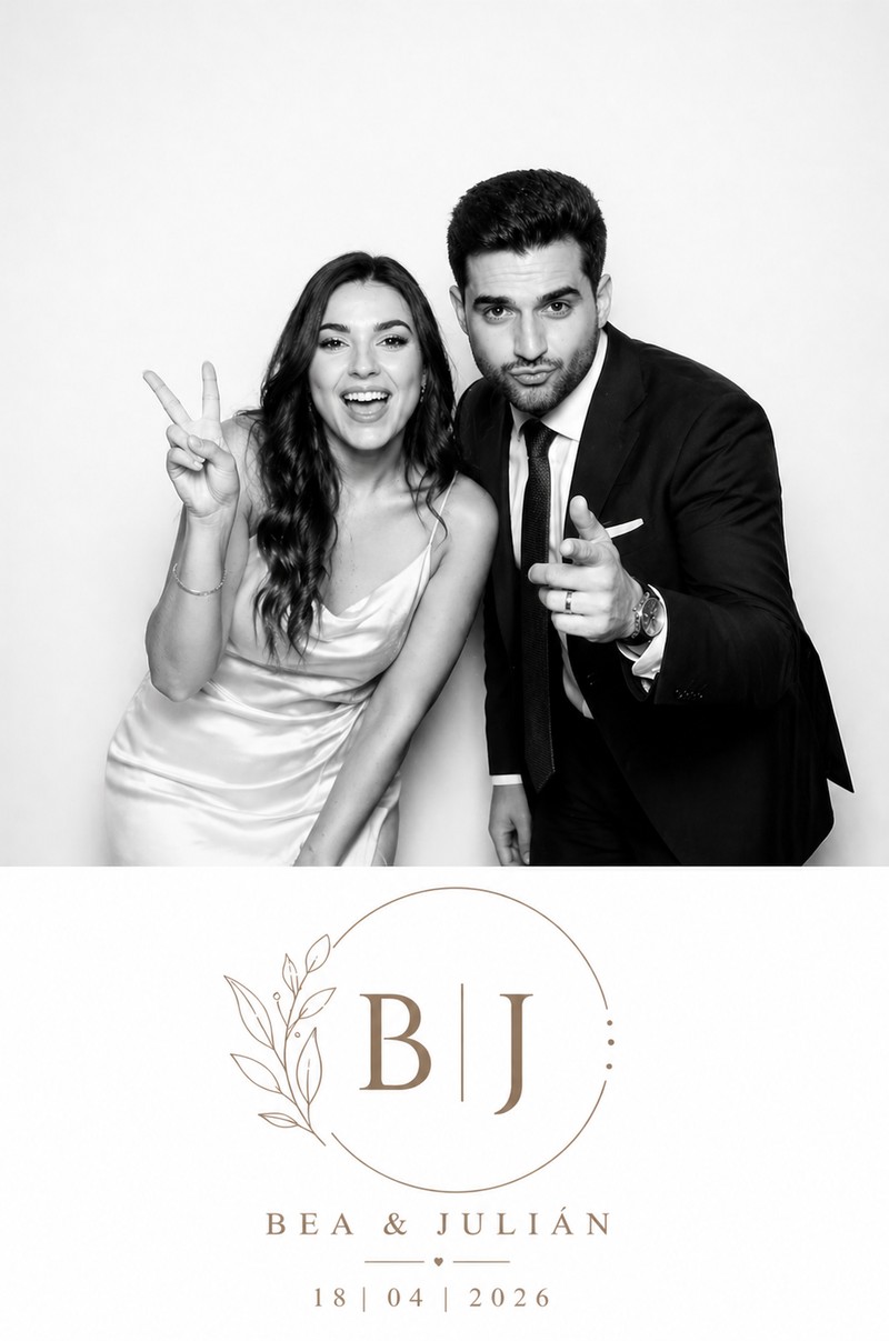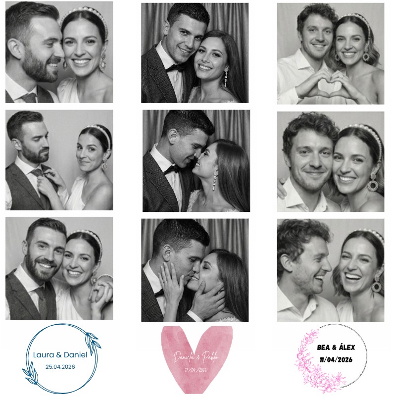 No somos un fotomatón más: somos especialistas en bodas. Nuestro asistente profesional anima a los invitados y cuida cada detalle durante todo el evento. Ofrecemos fotos ilimitadas, impresiones al momento, atrezzo variado y plantillas personalizadas únicas para vuestra boda. Todo incluido: transporte, montaje y recogida. Al terminar, recibís todas las fotos en digital y físico. Un servicio cercano, con experiencia real en bodas y un objetivo claro: que lo recordéis toda la vida.