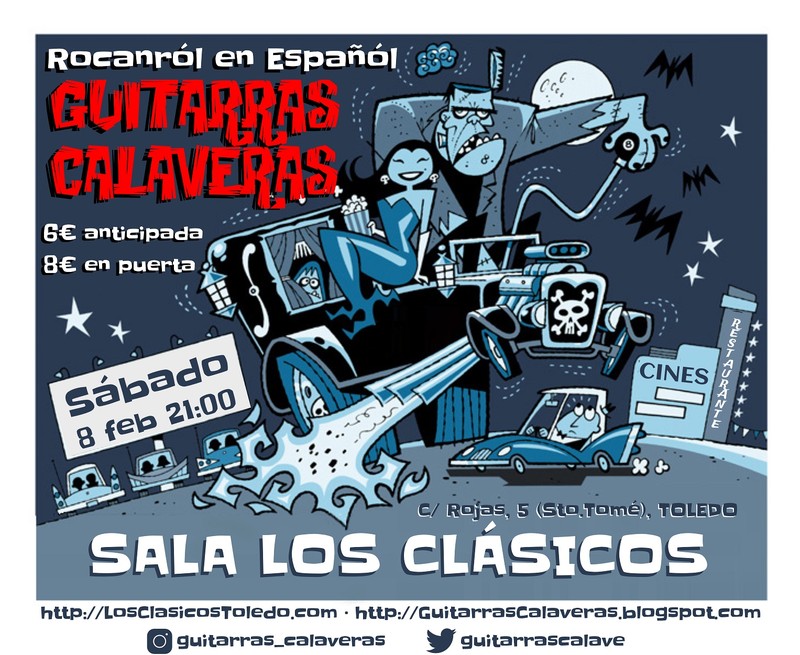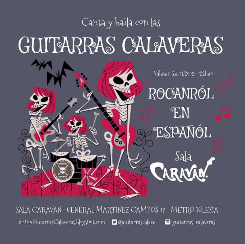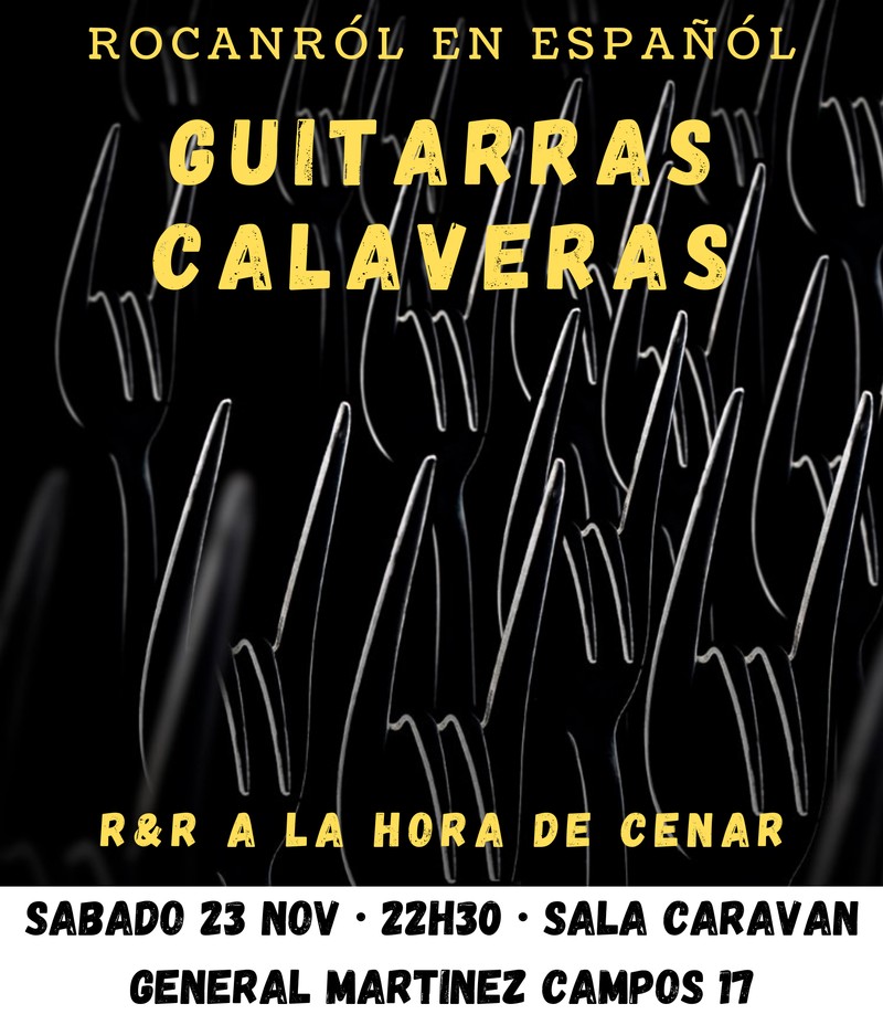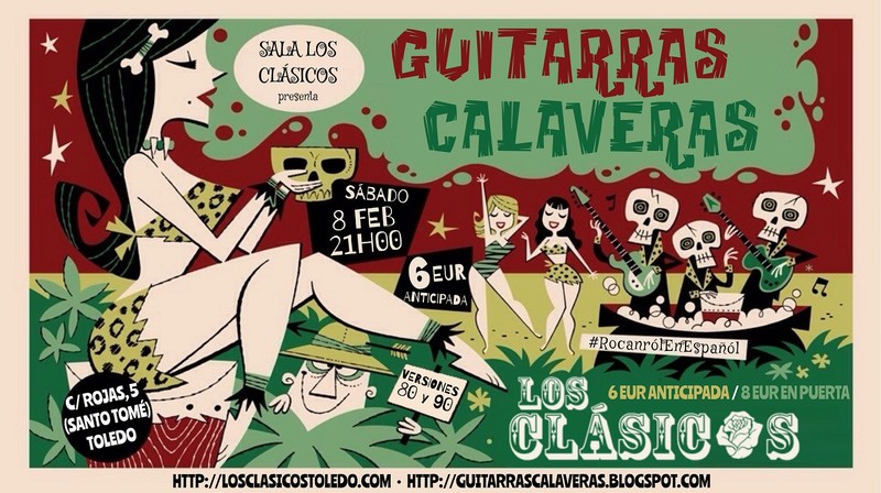 Los Guitarras Calaveras te traen esa música que vas a disfrutar con un directo potente, con un cantante de primera que animará el cotarro y con una banda detrás muy solvente, con experiencia de más de 25 años tocando en directo y grabando discos. Tenemos un amplio repertorio por lo que podrás hacerlo más pop, más rock o una mezcla de ambos.