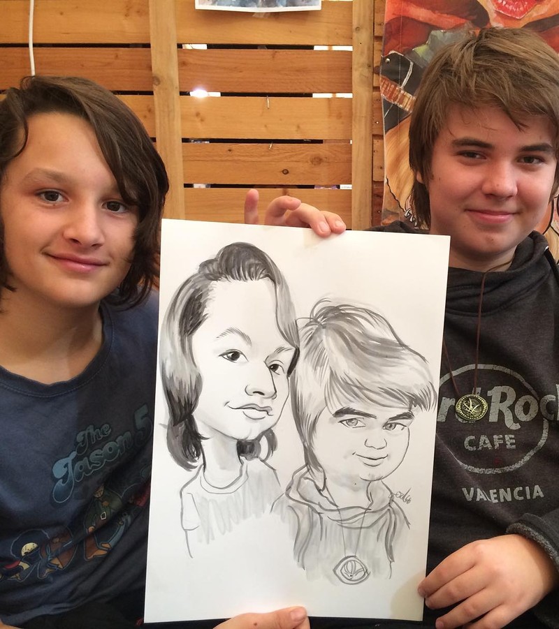 Profesionalidad, calidad artística, precios razonables, garantia de parecido en las caricaturas.