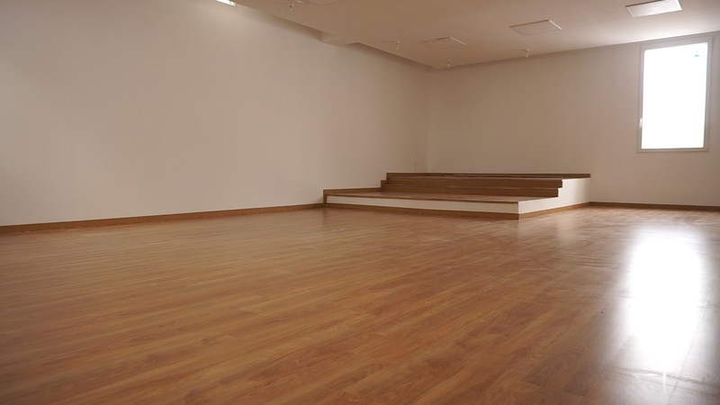 Todo el espacio está preparado con tarima de madera que absorbe el impacto, una tarima idónea para la danza.