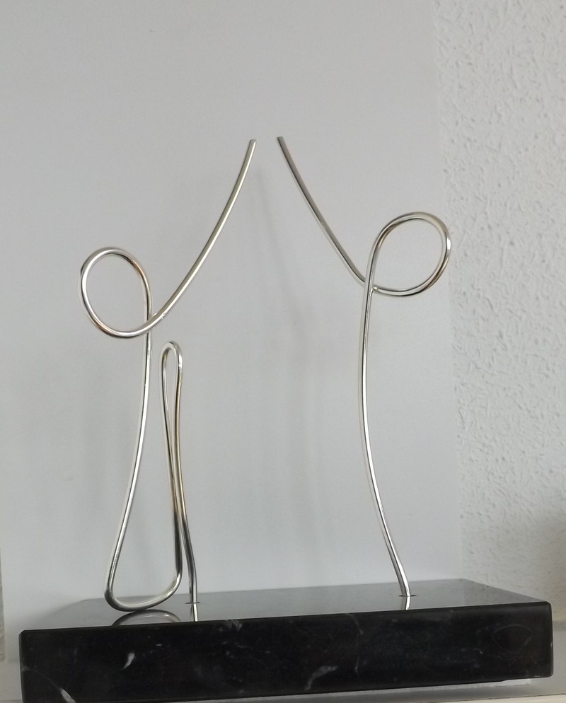 La Máquina de Dialogar es una serie limitada de 50 unidades originales, numeradas y firmadas por el escultor Pablo Albertí. Es una esculturas didáctica muy apropiada como regalo o recuerdo de bodas que combina humor y originalidad con materiales elegantes como mármol y varilla en baño de plata.