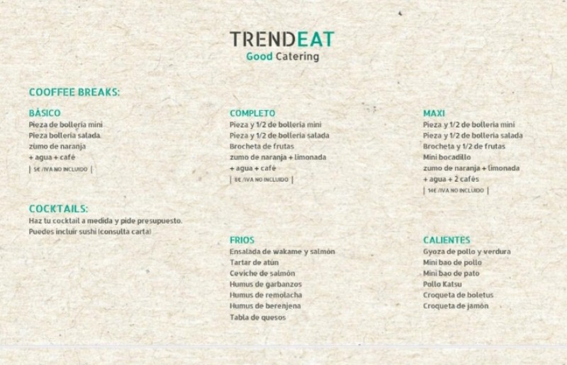 TRENDEAT GOOD CATERING es una empresa de catering gourmet especializada en la gastronomia nipona y mediterránea. Somos especialistas en la organización de eventos como bodas, cenas privadas, eventos de empresa, showcooking o inauguraciones y convenciones. Desarrollamos también la linea de talleres de aprendizaje para enseñar a los mas curiosos y una linea de distribución de producto de cuarta gama para profesionales y distribuidores.
