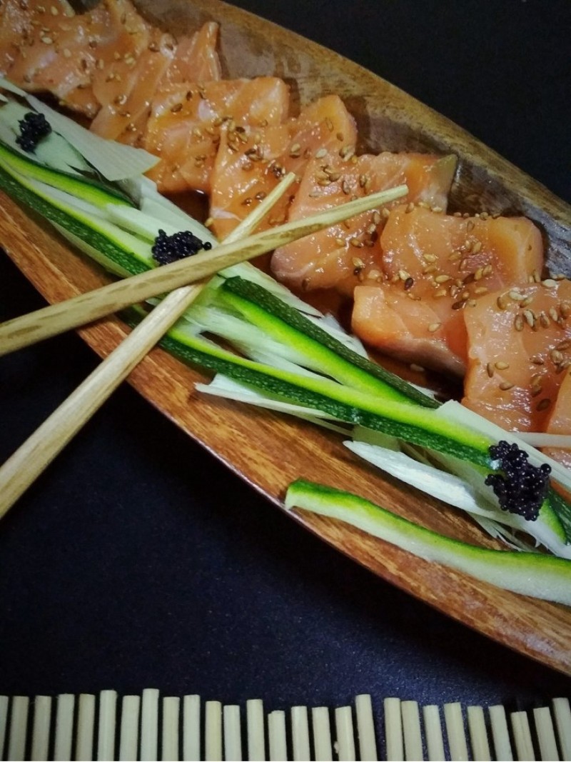 En nuestra cocina con ruedas preparamos platos típicos de la cocina japonesa, Sashimi de salmón, sashimi de atún, noodles con verduras sushimakis, tempura de verduras, teriyaki...y otros platos callejeros.