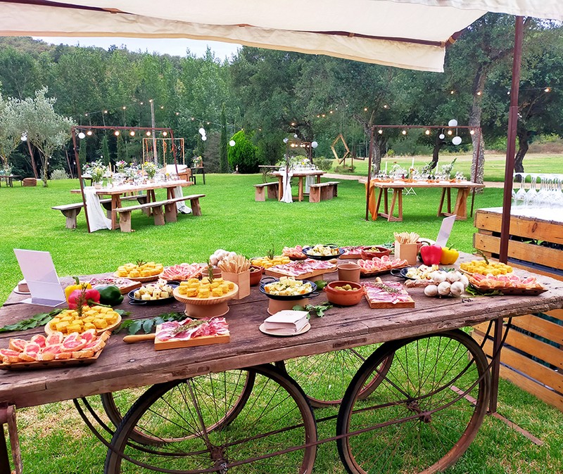 Cuentan con menús tanto para banquetes como para cócteles. Son propuestas totalmente adaptables y se pueden hacer a medida según los gustos de cada pareja. Trabajan también en colaboración con algunas masías, así como con proveedores de menaje y mobiliario que os ofrecerán un amplio abanico de modelos diferentes.