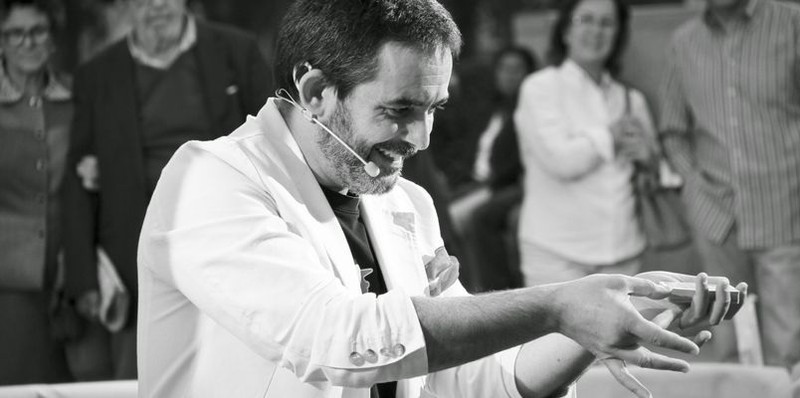Fiel representante de la escuela mágica española, con una magia directa, sin artificios, llena de humor y sensibilidad, se siente feliz interactuando con su público.