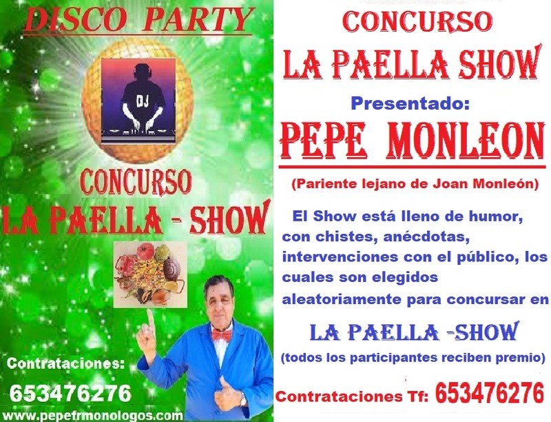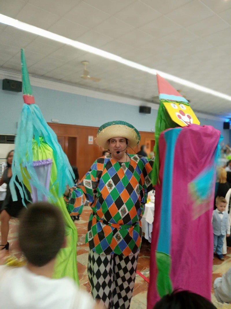 Primero CRISPÍN Animación para los niños y luego para el resto de invitados el Show de Monólogos PEPE F. R. "A VIVIR CON ALEGRIA Y OLÉ"