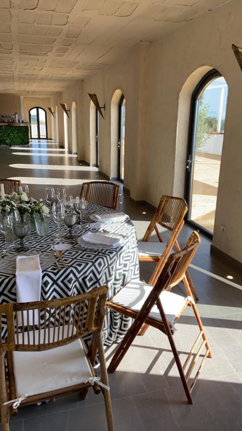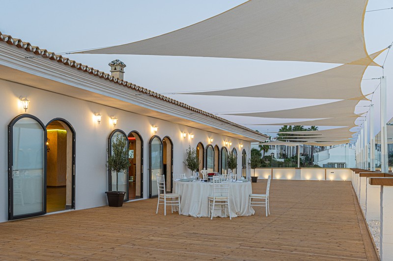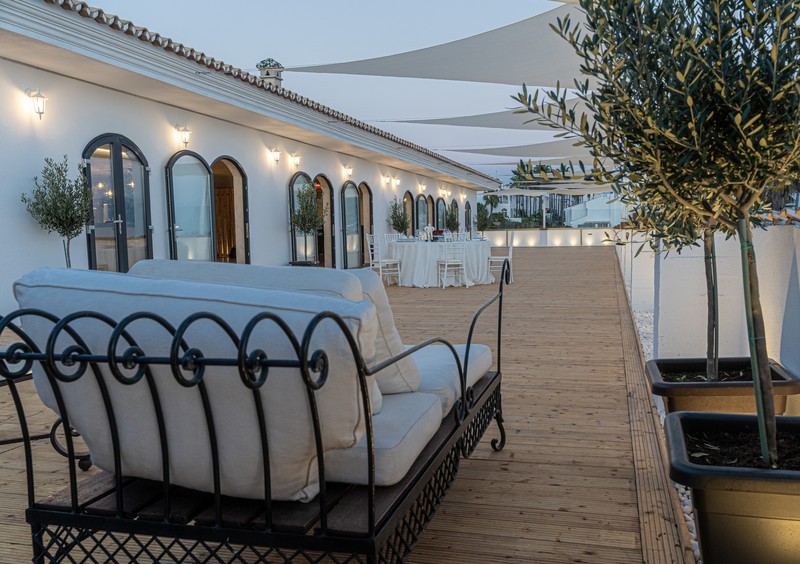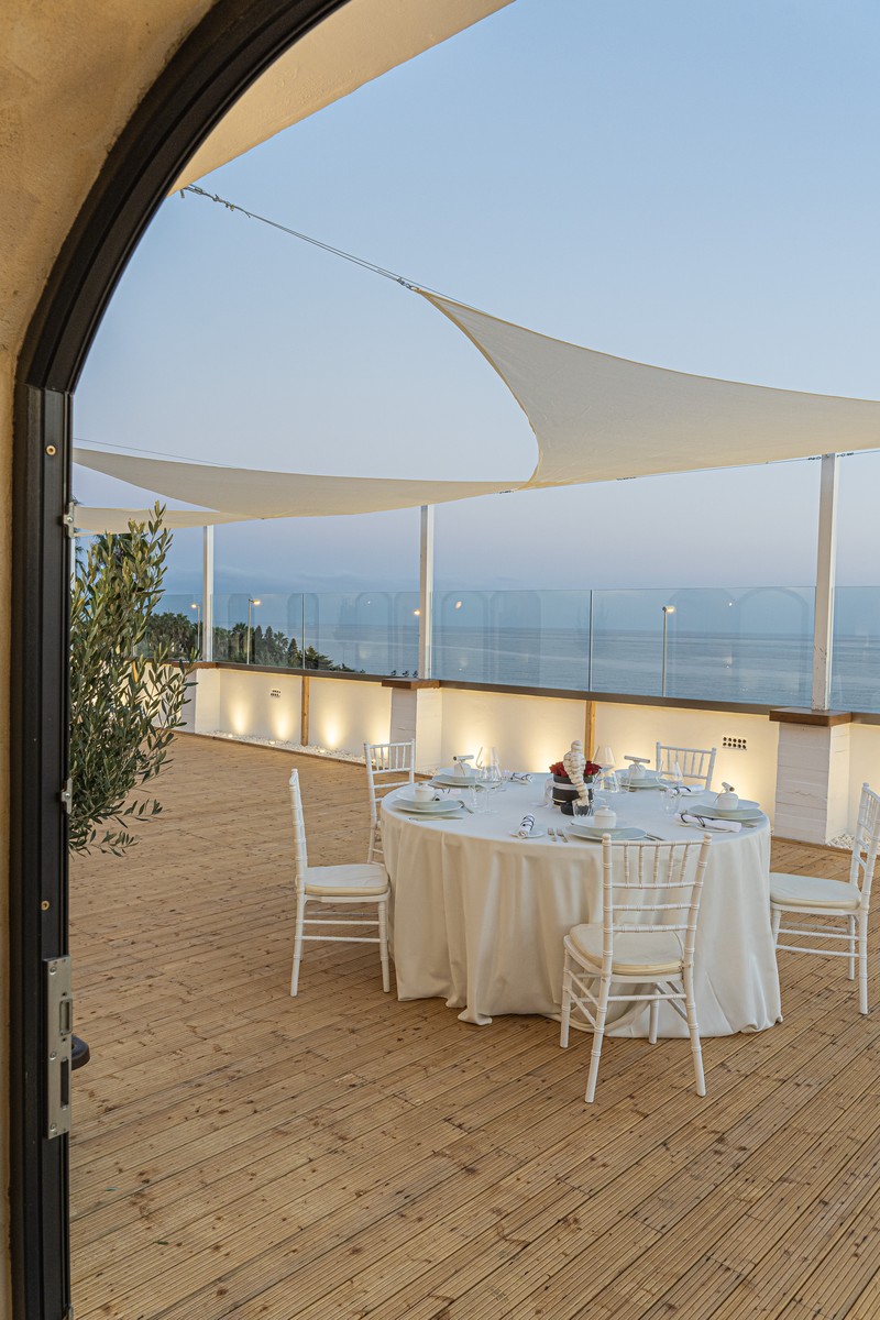 Los exteriores del enclave, de 400 m2, son perfectos para el cóctel de bienvenida o la copa de después del banquete, además, desde esta terraza podréis contemplar el Mediterráneo.