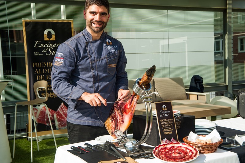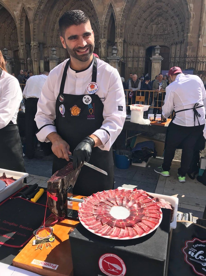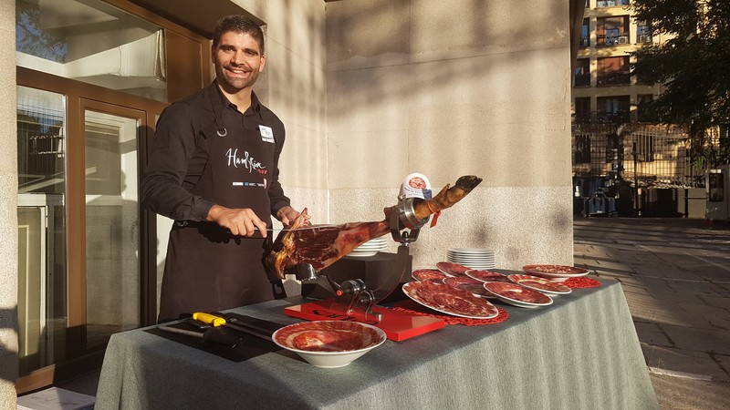 Selección y corte profesional de jamón, paleta, salmón o cecina.