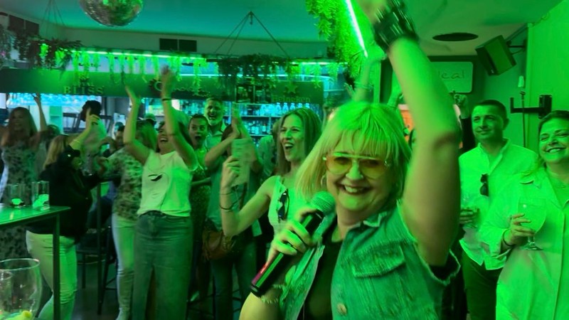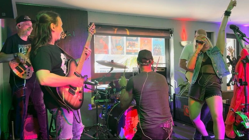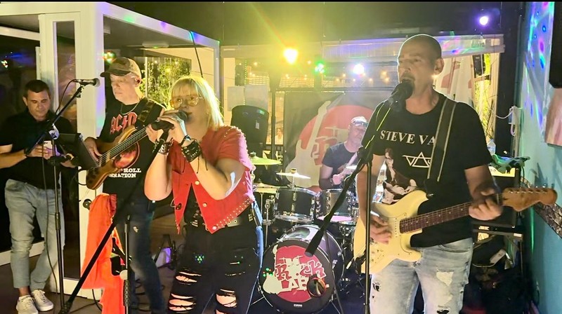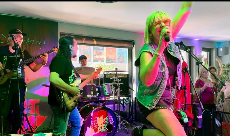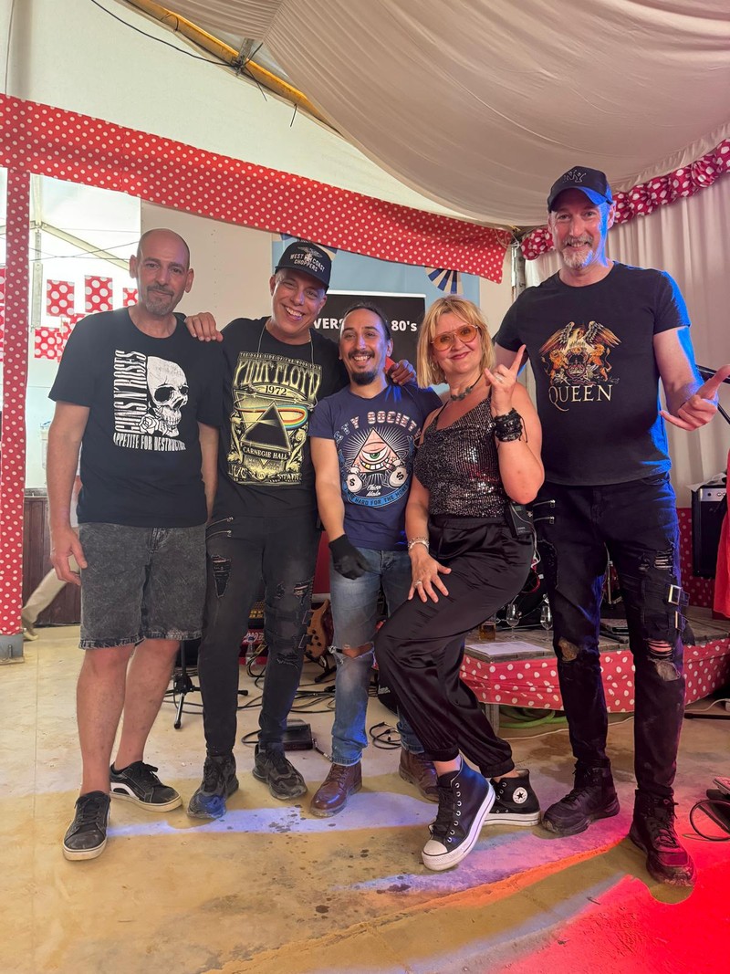 Nuestros músicos llevan años en los escenarios y su cantante que no deja a la gente sentada,con mucho desparpajo !!