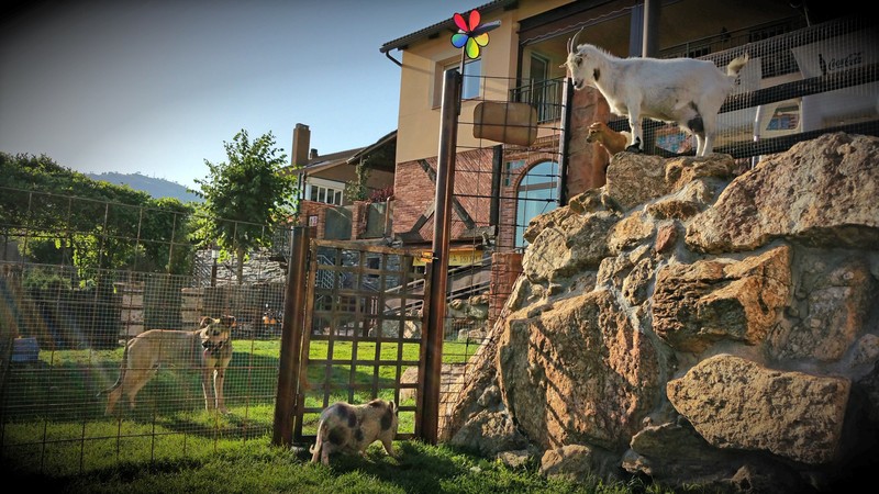 Puedes disfrutar de una sabrosa carne a la brasa, mientras observas a tu hijo jugando con los conejitos en la pequeña pradera y de fondo la sierra de Gredos en el horizonte!