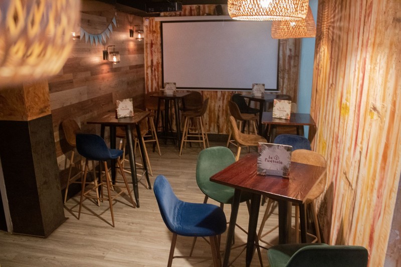La Picaruela (bar - restaurante & gran terraza), es una buena opción para la ocasión. El espacio interior es moderno y acogedor, con una distribución privilegiada de dos ambientes y capacidad para unas 50 personas - interior-. La configuración nos permite por tanto disponer de dos salas distintas: la que da a pie de calle es ideal para un picoteo, reunión o cóctel con mesas altas en el que poder moverse libremente.