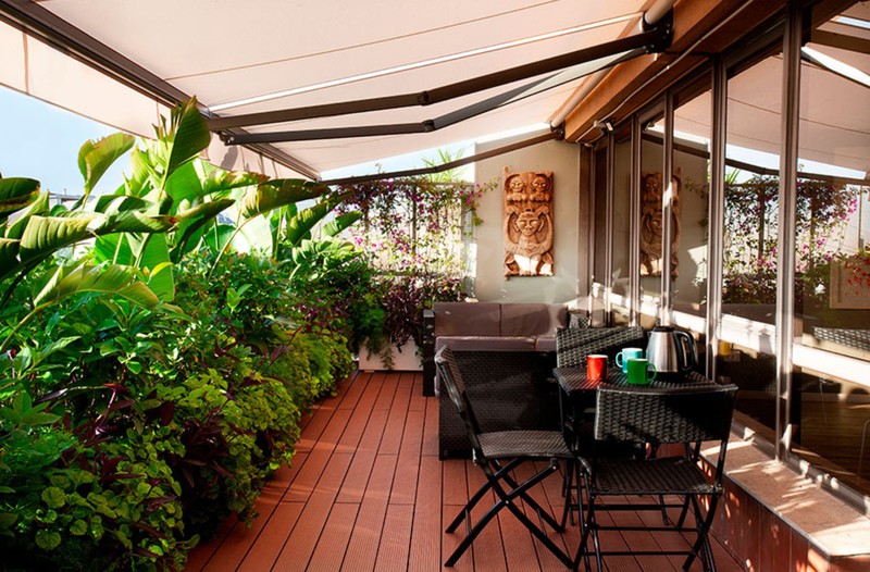Una sala climatizada, perfectamente diáfana y abierta a la veranda vegetal de la terraza, a través de su largo acristalado, permite trabajar enteramente con luz natural la mayor parte del año y disfrutar del regalo inigualable de una esplédida puesta de sol al finalizar la jornada de trabajo. La mobilidad de los diferentes elementos que la componen se adapta a todas las necesidades de configuración.