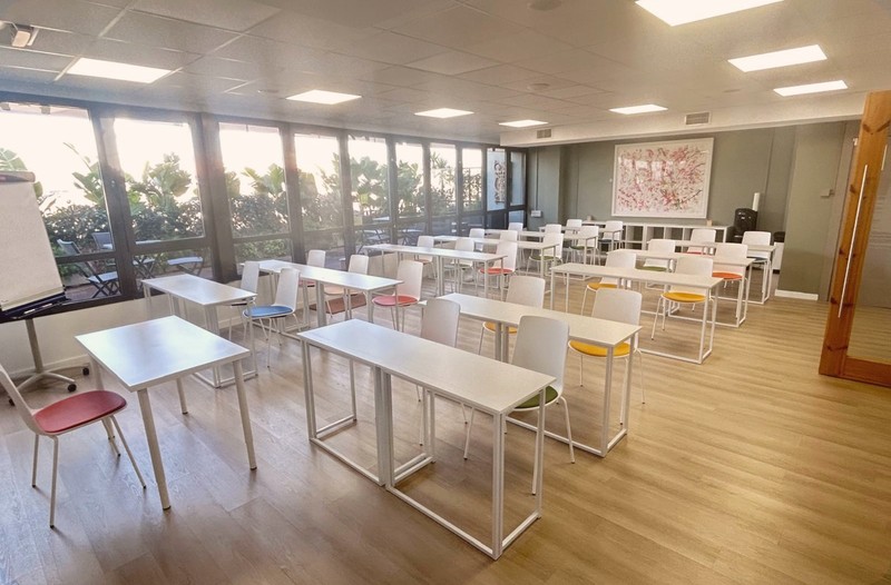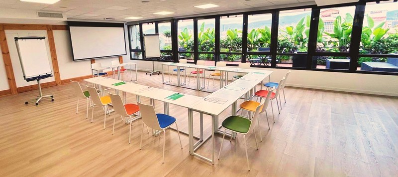 Disponemos de un aula acristalada con vistas a la terraza y a la sierra de Collserola, totalmente adaptable a las diferentes necesidades de configuración. Además podrás disfrutar de los tres espacios, zona de descanso, terraza y aula, para albergar los diferentes momentos y las diferentes conversaciones.