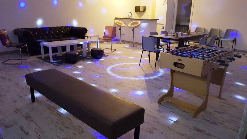 Todas las salas disponen de baño, office con nevera, microondas con grill, fregadero, cafetera, barra con taburetes, TV DE 50´con acceso a internet, cadena de música, futbolín, luces disco al ritmo de la música, climatizador, mesas y sillas, zona de sofás... etc.