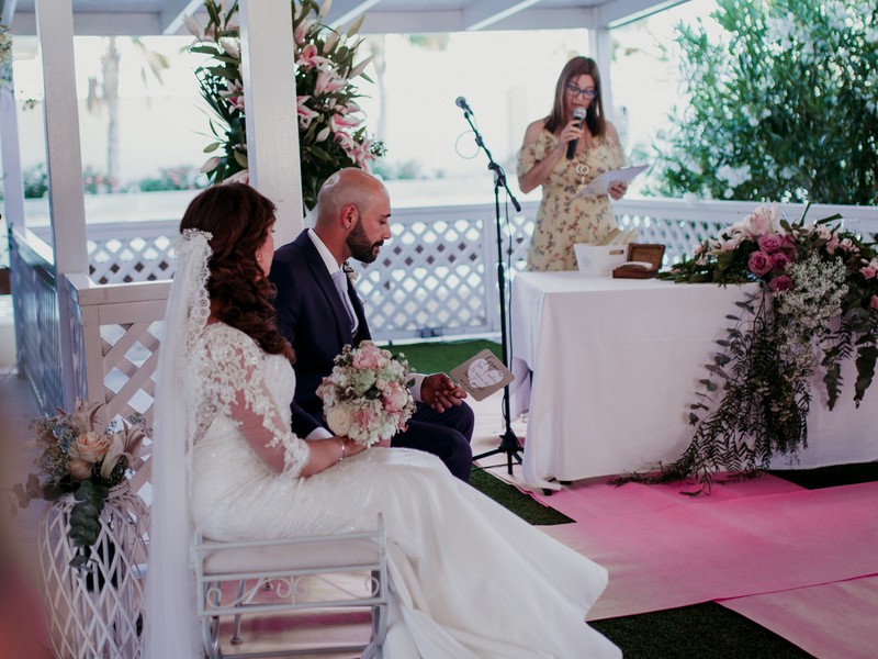 Organizo, coordino, escribo y leo vuestro texto personalizado para la ceremonia civil. Os ayudo con las personas que quieren participar en vuestra boda mediante una lectura o en la manera que quieran participar, pajes y damas / caballeros de honor. Además os puedo asesorar con la música para la ceremonia, haciendo una play -list para el dj o músicos en directo. Así como, con el tema protocolario y distribución del espacio.