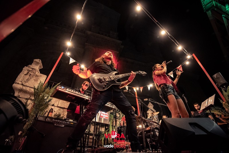 - Sexteto con batería, guitarra, voz femenina, voz masculina, violín, teclado y bajo