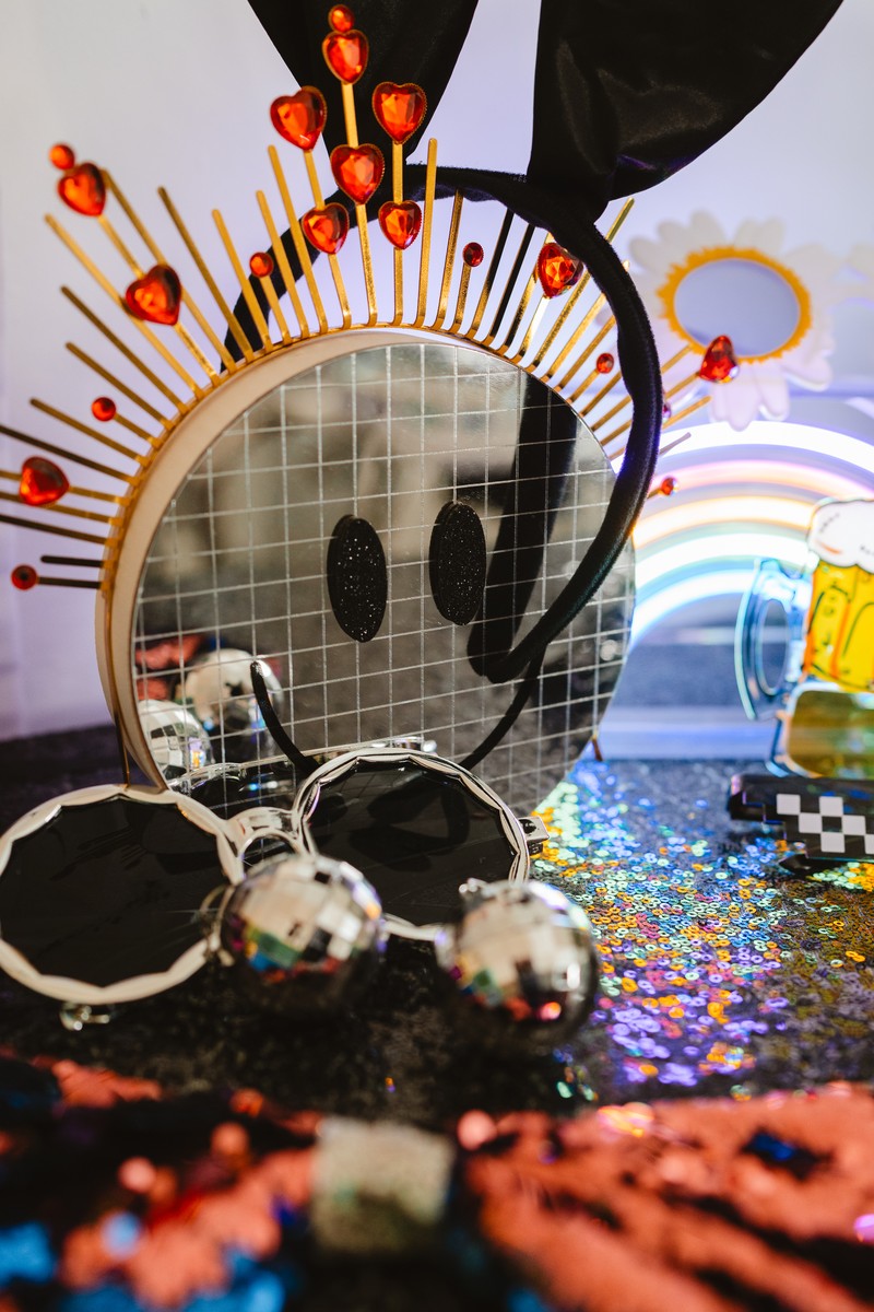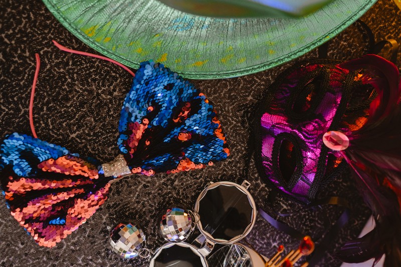✅ Atrezzo divertido: carteles, gorros, bigotes, gafas, pajaritas y pelucas.