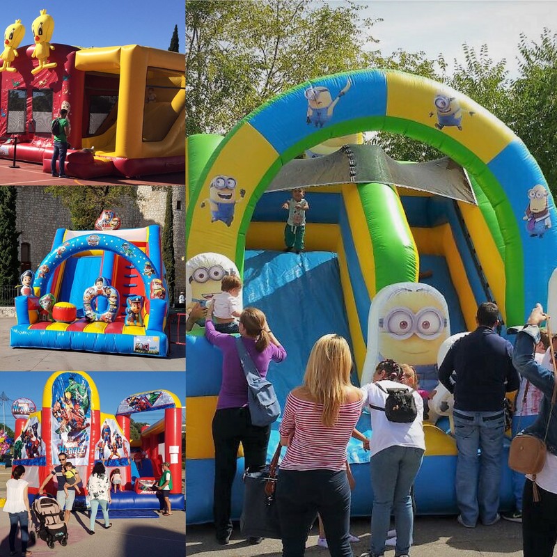 - Más de 150 modelos de Castillos Hinchables para elegir, distintos tamaños, espectaculares dibujos de tus personajes favoritos.