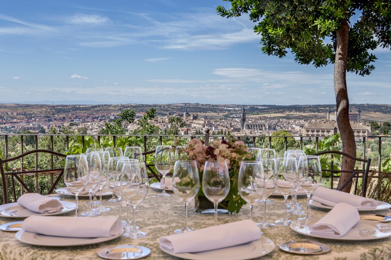 Situado en el Cerro del Emperador, colina que domina la ciudad, cuenta la leyenda que era el lugar preferido por Carlos V para admirar la capital de su imperio. En este marco y con Toledo al fondo, Viñedos Cigarral Santa María es un lugar mágico rodeado de viñedos, con unas vistas inigualables de Toledo ya que es uno de los Cigarrales más altos de la ciudad. En el año 1997 cuando se plantó las primeras cepas, se convirtió en uno de los cuatro viñedos urbanos que hay en el mundo. Junto a los olivos, bellos enebros y grandes encinas, forman un marco excepcional donde disfrutar de la comida, el vino y la hospitalidad de Adolfo y su familia. Su servicio de restauración integra los mejores productos de calidad excelente y los más suculentos platos de la tradición gastronómica en perfecta armonía con las técnicas más avanzadas y las recetas más exóticas. El sabor y los aromas son cuidados hasta el último detalle para disfrute de los visitantes.